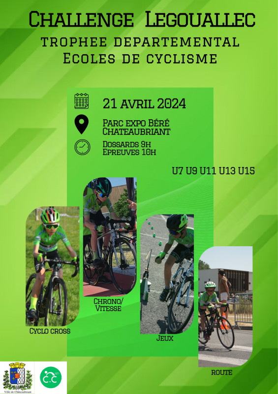 Le Trophée départemental des Ecoles de vélo aura lieu à Châteaubriant (Parc des Expositions de Béré - La Halle de Béré), le dimanche 21 avril 2024.